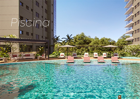 Condomínio completo, com salas comerciais, apartamentos de 38,30 a 191,50m², duplex com 334,70m² e mais de 1.700m² em área de lazer.