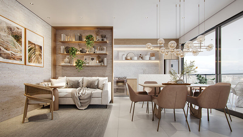 • O modelo de 3 dormitórios com 88,59 m² oferece espaço inteligente e bem distribuído. É ideal para famílias que desejam praticidade sem perder conforto e elegância.