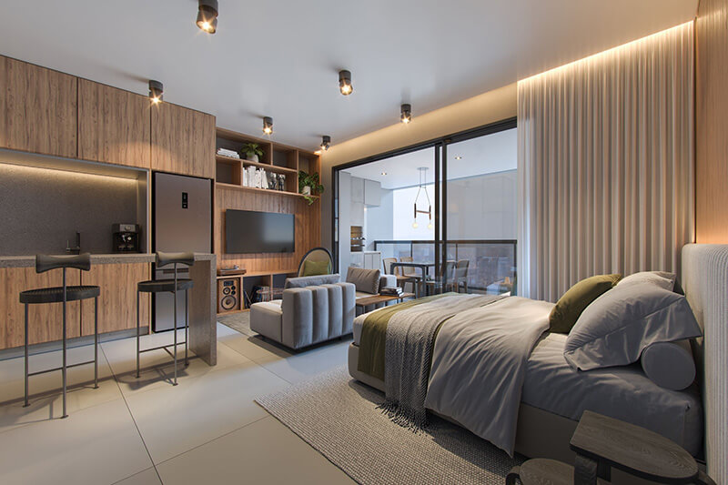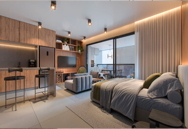 • O Studio da Torre B é compacto, moderno e funcional, com 38,3 m² de pura eficiência. Ideal para quem busca praticidade, estilo e conforto em um ambiente otimizado.
