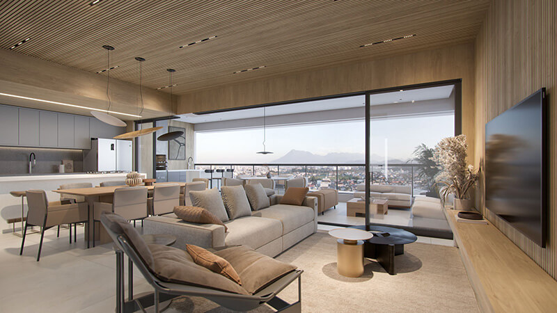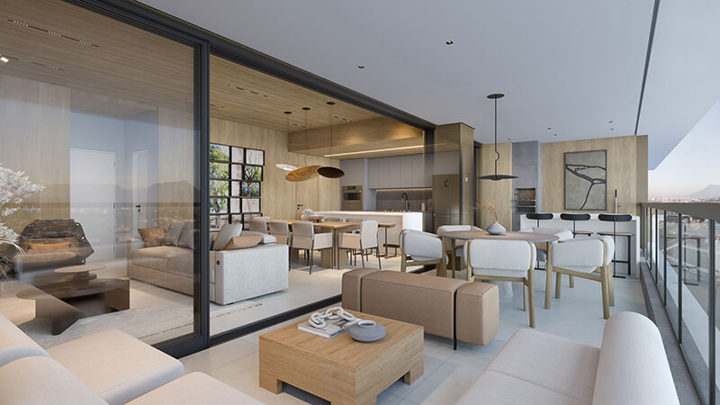 • Este modelo combina 3 dormitórios com sala estendida, mantendo os 191,5 m² de sofisticação e amplitude. O projeto é ideal para quem deseja mais espaço na área social sem abrir mão da privacidade nos quartos.